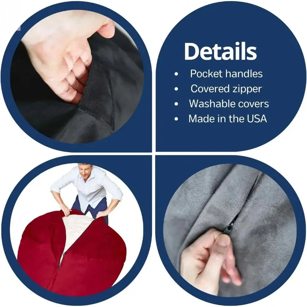 - Comfortable furniture solution: Luxury Bean Bag Chairs from are available in a range of stylish colors and sizes (3, 4, 5, 6 and 7 foot), and are breathable, comfortable, and ultra-soft. Each product is carefully crafted and quality-checked under the highest American standards. Made in the USA