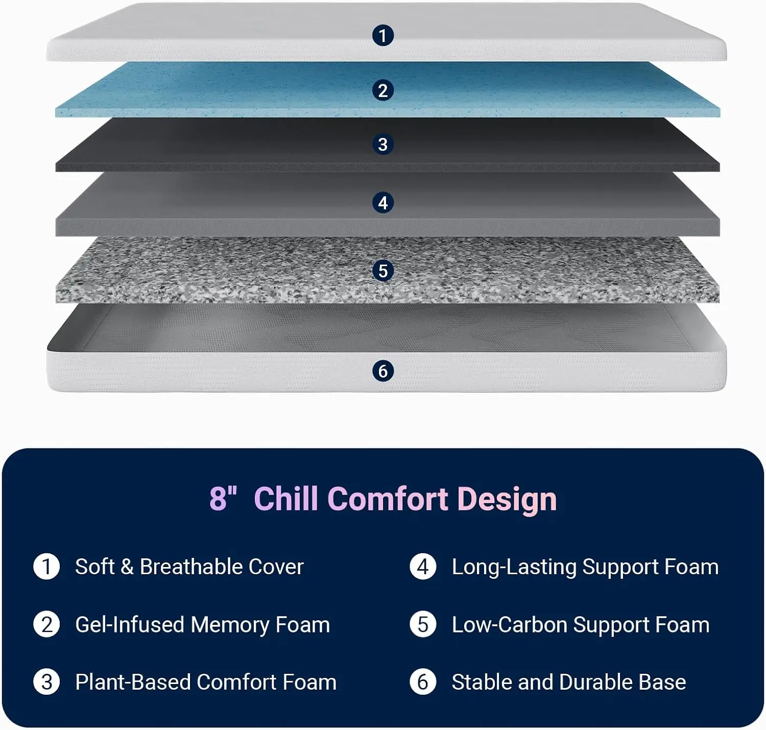 The 8 Inch Twin Mattress is crafted with cutting-edge gel memory foam that conforms to your body shape. This means you will experience enhanced comfort and support throughout the night. The cooling gel helps regulate temperature, preventing overheating while you sleep. This helps you stay comfortable and relaxed, no matter the season. Additionally, the mattress alleviates pressure points, making it an excellent choice for side sleepers.