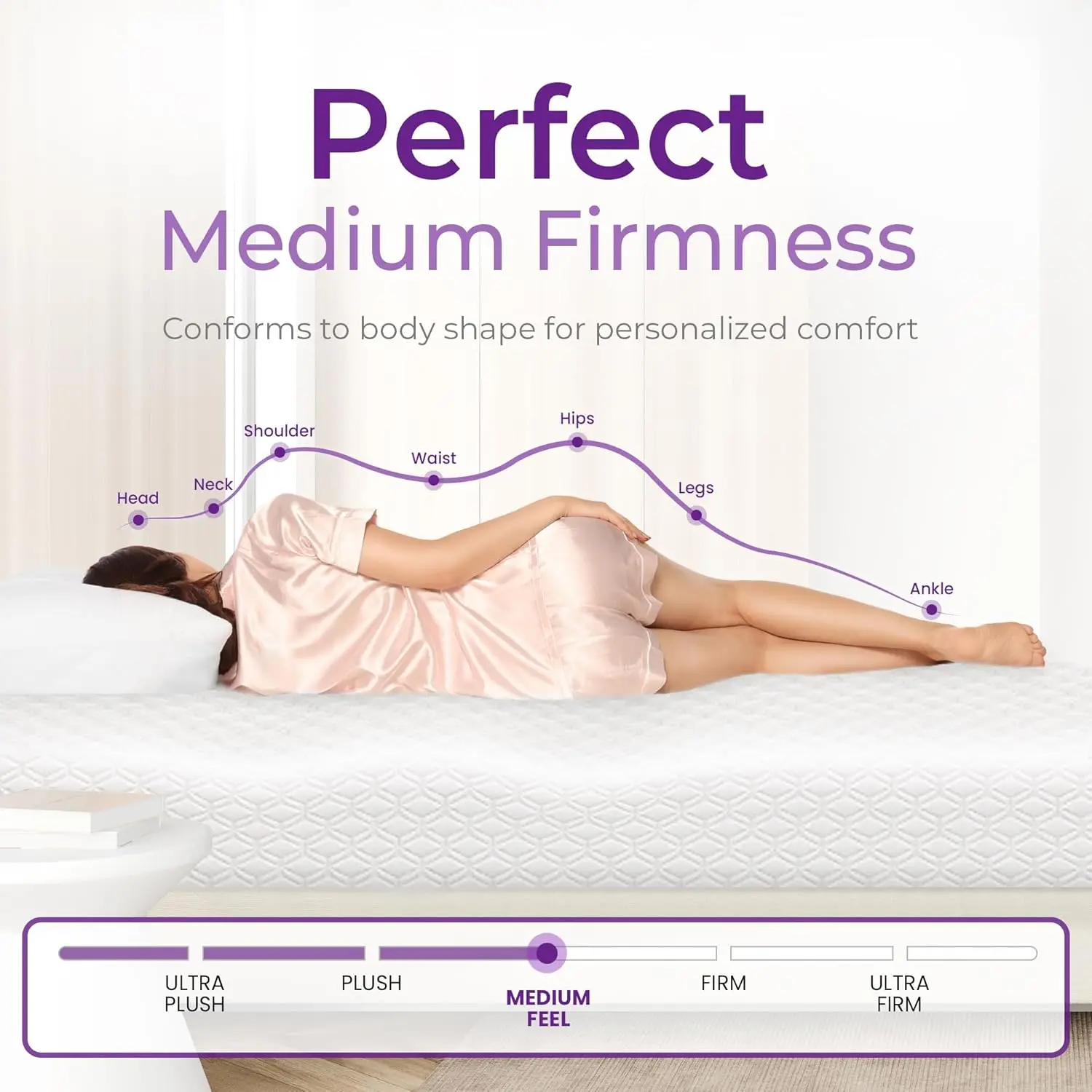 - Enjoy excellent pressure relief and support with a perfect medium firmness.