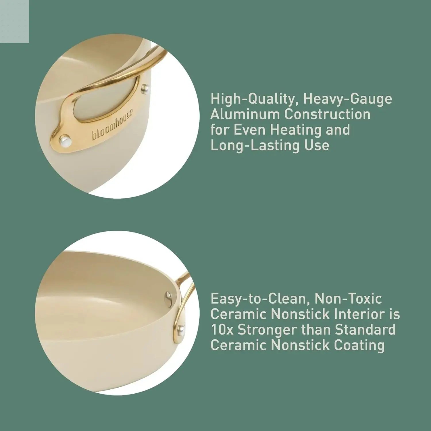 1. 15 Piece Pots and Pans Heavy Duty Aluminum Premium PFA Free Ceramic Nonstick Dutch Oven Pot with Lid - Almond Cream w/Gold Handle