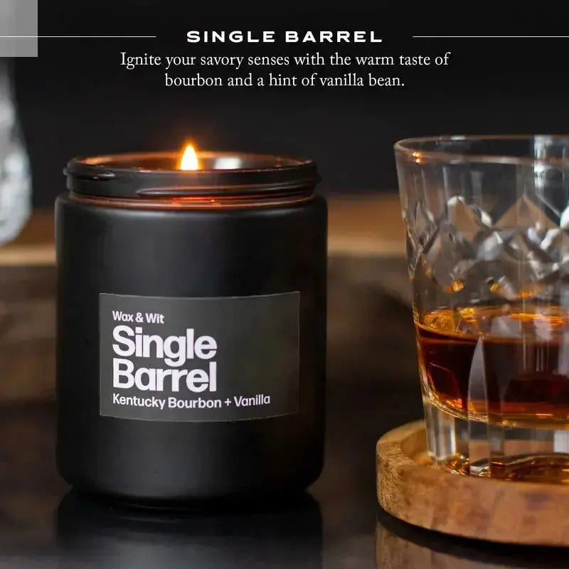 Indulge in the sophisticated aroma of our Wax & Wit Candles for men, seamlessly blending the rich notes of Kentucky bourbon with the smooth allure of vanilla. Elevate your environment with this carefully crafted fragrance, embodying the refined luxury of a premium, single-barrel bourbon experience.