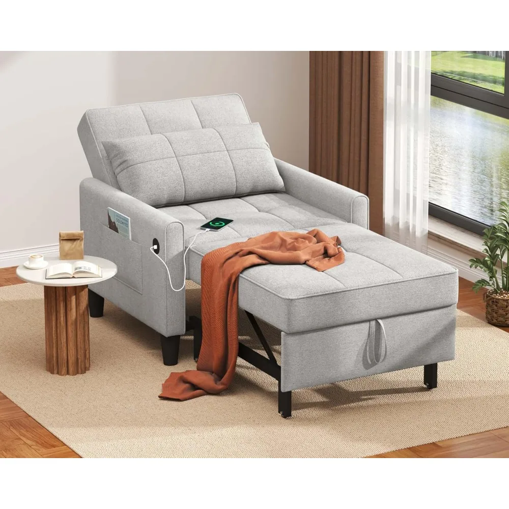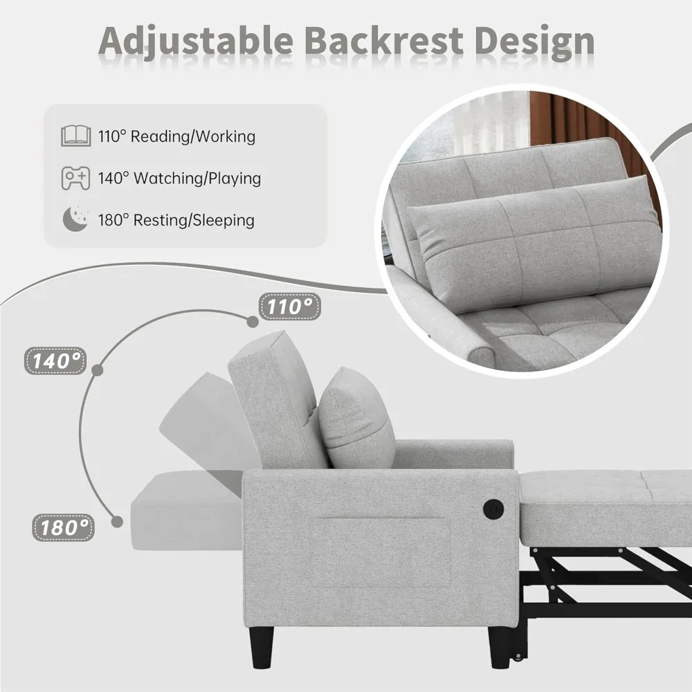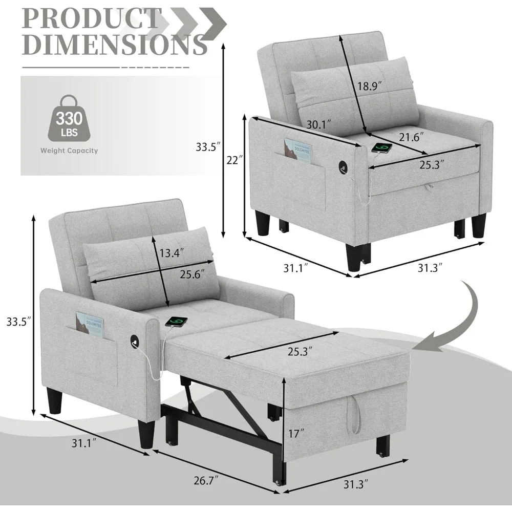 "3-in-1 Sleeper Chair - Convertible Futon with USB Ports & Side Pockets