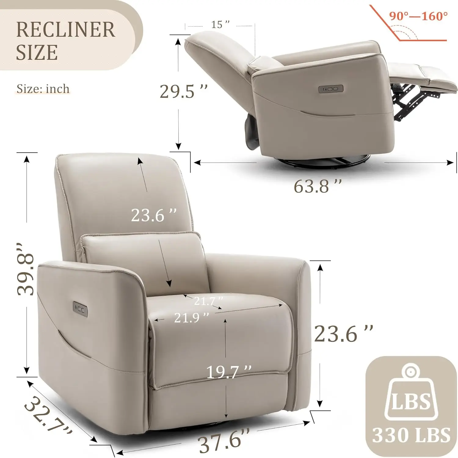Swivel Recliner Chair, Glider Rocking Chair Nursery, Electric Rocking Recliner Chair of Faux Leather, Power Rocker Recliner Chair with Side Pockets