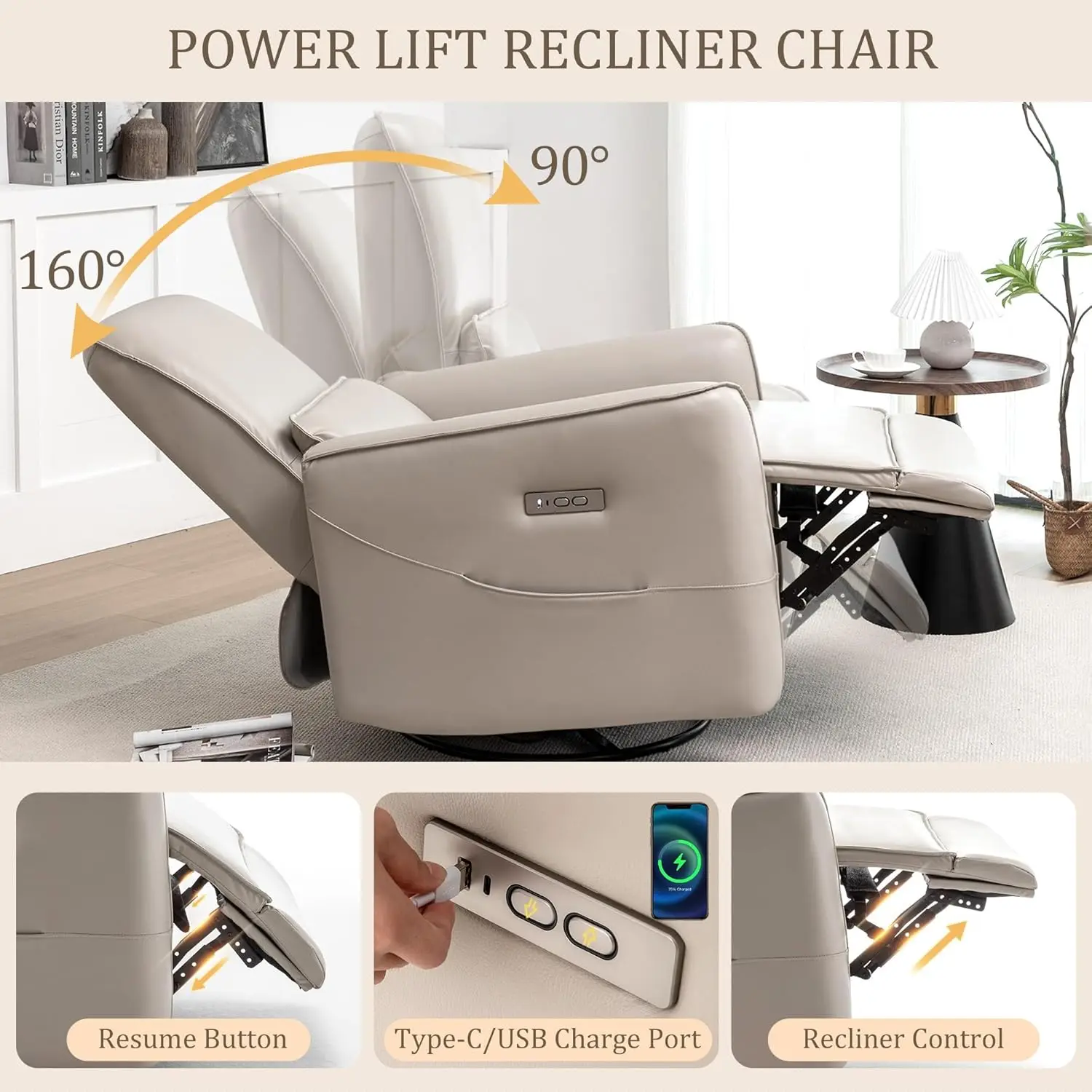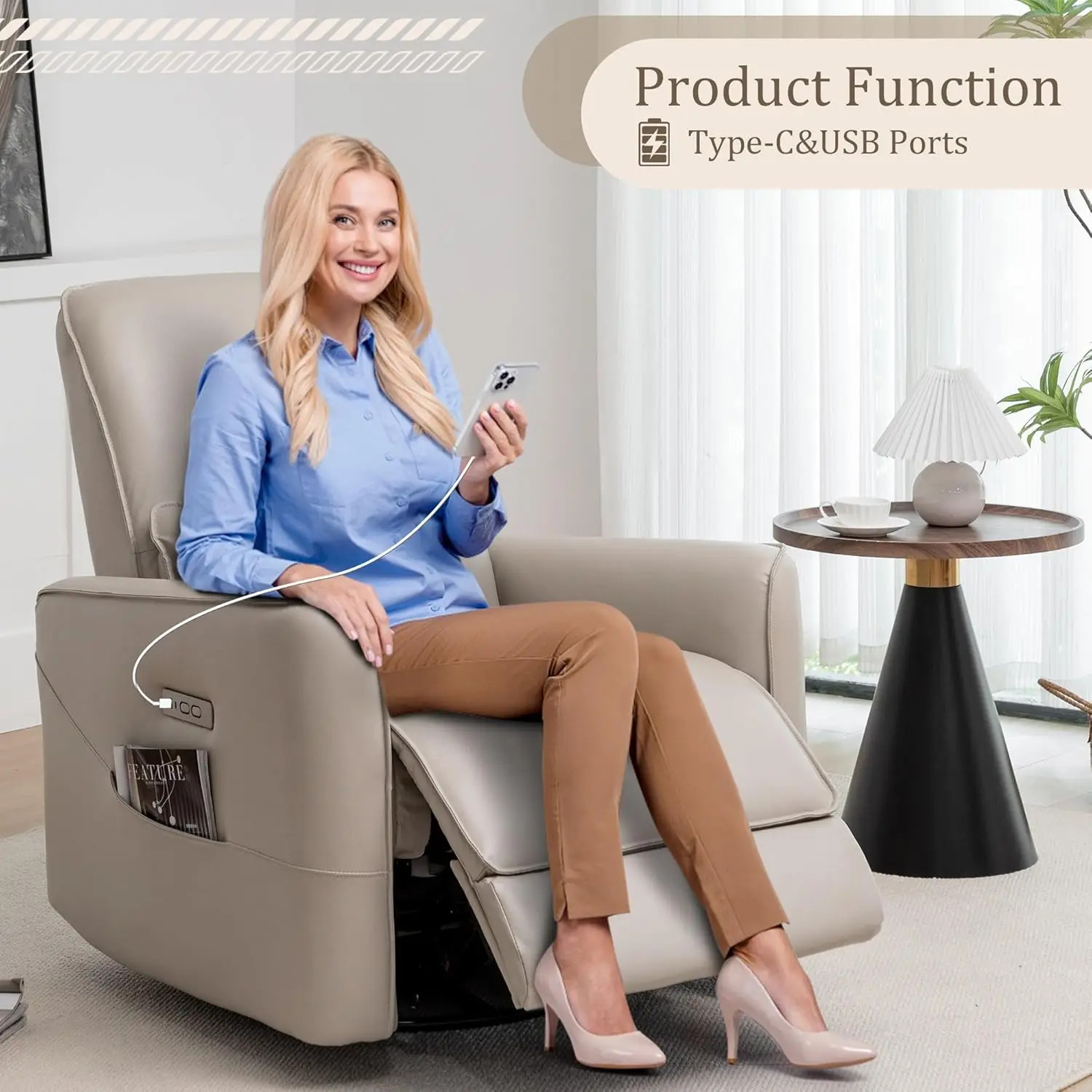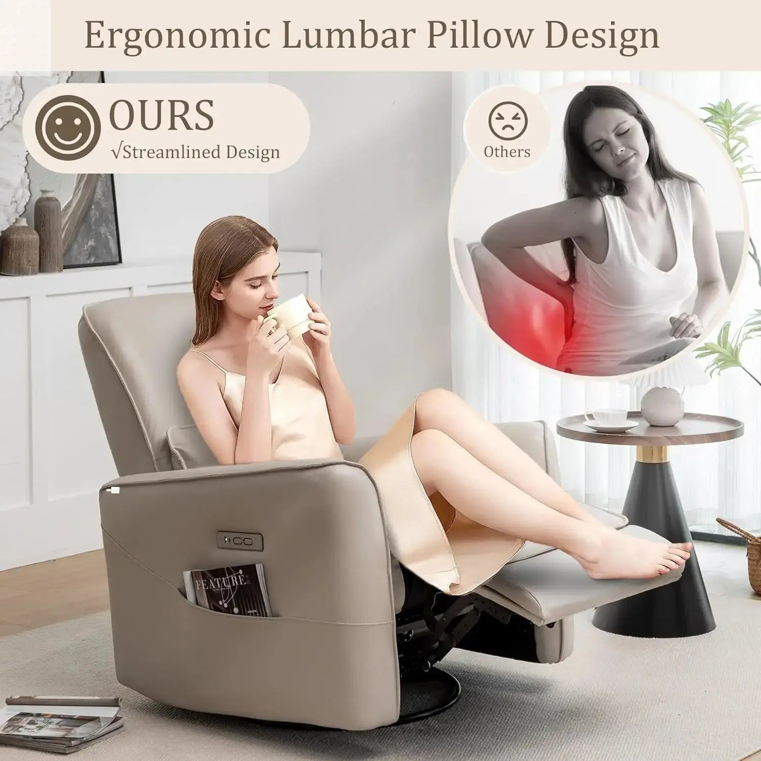 • [Power Reclining] The rocker recliner chair's side-mounted control panel effortlessly adjusts the backrest and footrest, providing personalized comfort at your fingertips. Low-power electronic equipment stays connected with the built-in USB interface – no need to search for outlets or interrupt your relaxation. The leather recliner chair ensures a stable reclining experience, effortlessly maintaining your desired position without relying on your body's pressure to recline.